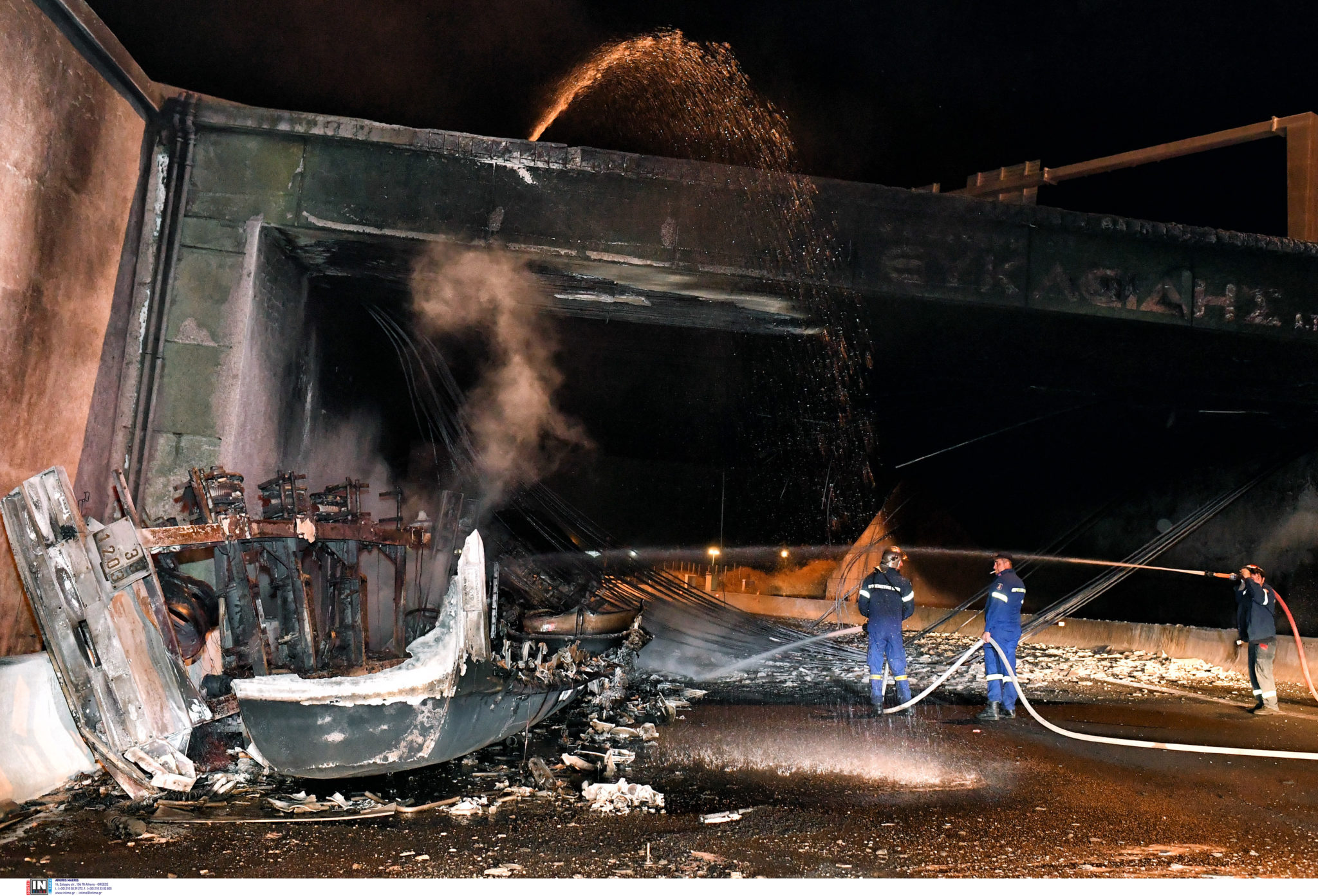 Η ανατροπή προκάλεσε μεγάλη φωτιά, η οποία έχει κατασβεστεί πλήρως. Πυροσβεστικές δυνάμεις παραμένουν στο σημείο.