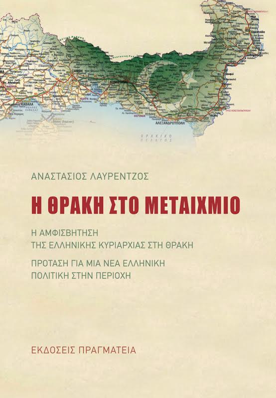 Εδώ και λίγους μήνες κυκλοφορεί ένα νέο βιβλίο με τίτλο «Η Θράκη στο μεταίχμιο». Το βιβλίο αυτό του Αναστάσιου Λαυρέντζου για πρώτη φορά επιχειρεί μια τομή: να παρουσιάσει τί ακριβώς συμβαίνει στη Θράκη και να καταδείξει πώς η τουρκική πολιτική σταδιακά προσεγγίζει τον στόχο της στην περιοχή, που δεν είναι άλλος από τη μετατροπή της Θράκης σε μια νέα Κύπρο. Επί πλέον παρουσιάζονται οι παλλινωδίες της ελληνικής πλευράς, η οποία μη διαθέτοντας μια συγκροτημένη πολιτική για τη Θράκη, έχει αποδεχτεί εμμέσως ένα ιδιότυπο καθεστώς συγκυριαρχίας στην περιοχή και παράλληλα την έχει καταδικάσει σε έναν διαρκή οικονομικό και δημογραφικό μαρασμό. Μέσα από αυτά τα στοιχεία ο αναγνώστης καλείται να καταλάβει γιατί η Θράκη φτάνει πλέον σε ένα μεταίχμιο και γιατί μια σειρά από σημαντικές εξελίξεις είναι «επί θύραις». Στο πλαίσιο αυτό το βιβλίο δεν διστάζει να προβλέψει ακόμη και ποιές θα είναι οι επόμενες κινήσεις της τουρκικής πλευράς. Δεν σταματά όμως εκεί. Προχωρά στη διατύπωση μιας πλήρους πρότασης για μια νέα ελληνική πολιτική στη Θράκη, η οποία έχει ως κύριο συστατικό της μια νέα πρόταση για την οικονομική της ανάπτυξη. Αποσπάσματα του βιβλίου και περιεχόμενα μπορείτε να δείτε στην ιστοσελίδα www.pragmatia.gr