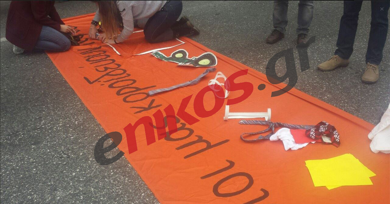 Με κάθε ευφάνταστο τρόπο θέλουν να εκφράσουν οι διαδηλωτές την δυσαρέσκεια τους προς την κυβέρνηση για το ασφαλιστικό που προωθεί η κυβέρνηση. Όπως φαίνεται και στις φωτογραφίες στην πλατεία Κλαυθμώνος οι διαδηλωτές ετοιμάζουν ένα πανό με γραβάτες και τρακτέρ.
