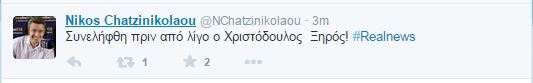 Συνελήφθη το μεσημέρι του Σάββατου ο Χριστόδουλος Ξηρός. Την πληροφορία μετέδωσε πρώτος ο Νίκος Χατζηνικολάου μέσω Twitter.