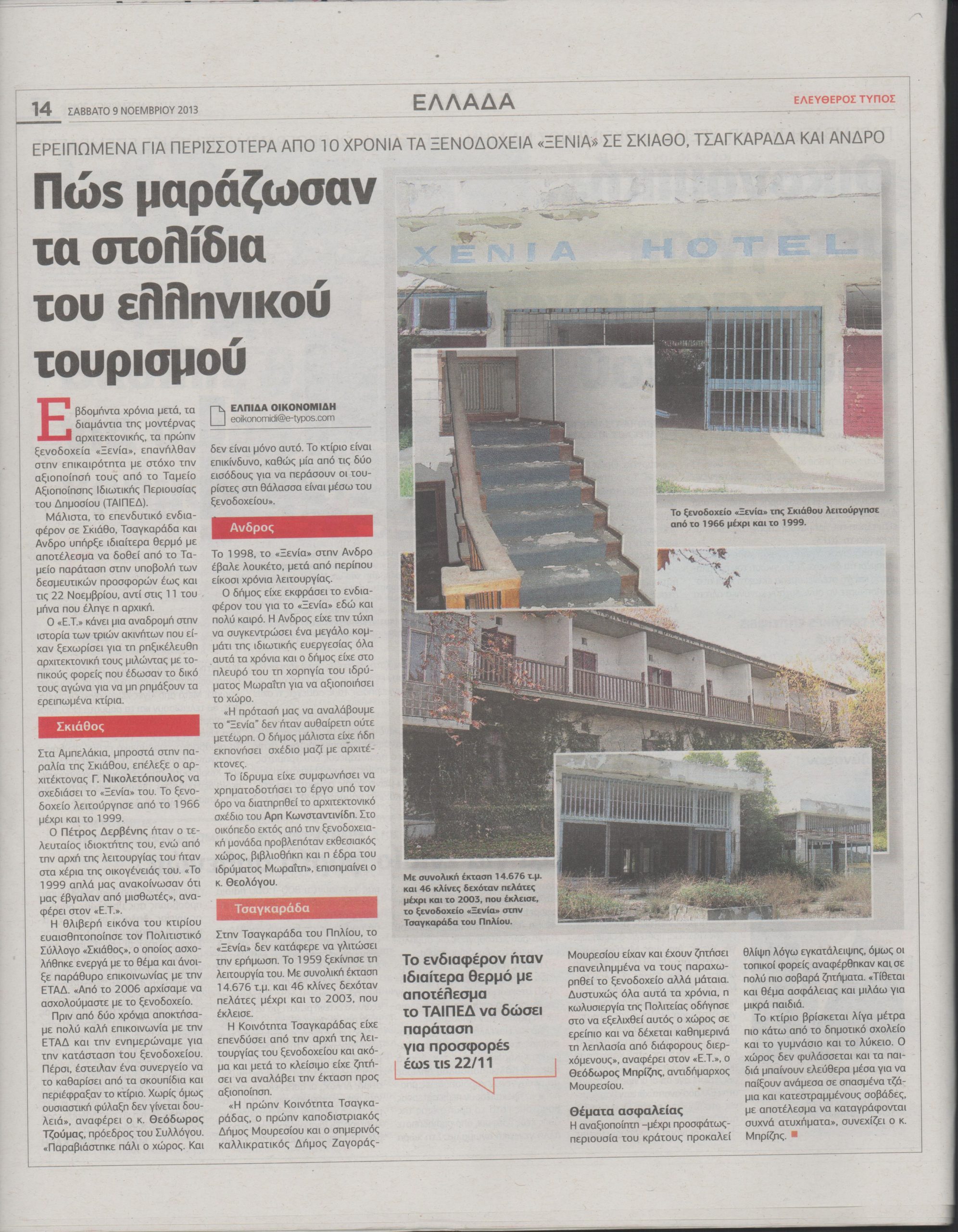 Ο Ελεύθερος Τύπος, κάνει μια αναδρομή στην ιστορία των τριών ακινήτων που είχαν ξεχωρίσει για τη ρηξικέλευθη αρχιτεκτονική τους μιλώντας με τοπικούς φορείς που έδωσαν τον δικό τους αγώνα ναι να μην ρημάξουν τα ερειπωμένα κτίρια.