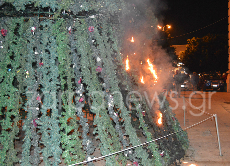 Άγνωστοι επιχείρησαν να κάψουν το χριστουγεννιάτικο δέντρο στην Πλατεία Αγοράς, στα Χανιά, σήμερα το απόγευμα, γύρω στις 7 και μισή.