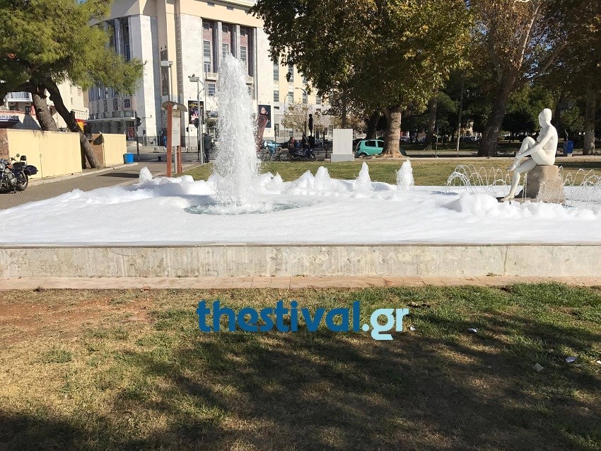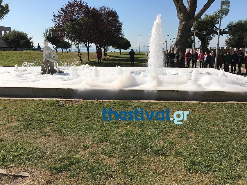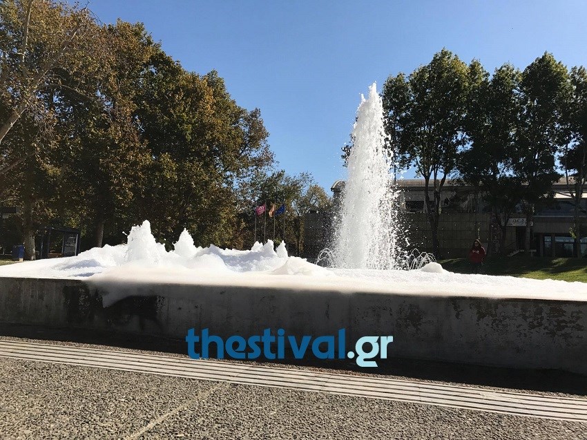 Όχι δεν πρόκειται για κάποιο event του δήμου Θεσσαλονίκης, αλλά για μια κακόγουστη φάρσα που έκαναν άγνωστοι ρίχνοντας σαμπουάν στο συντριβάνι.