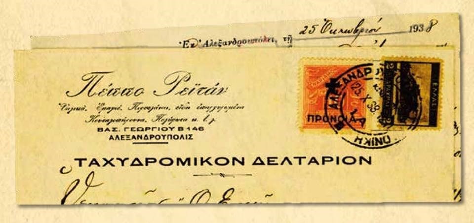 25 Οκτωβρίου 1938, ταχυδρομικό δελτάριο με τη σφραγίδα του κ. Πέππο Ρεϊτάν. (Πηγή: Γειτονιές & Αναμνήσεις Αλεξανδρούπολης/Βίκυ Ρεϊτάν)