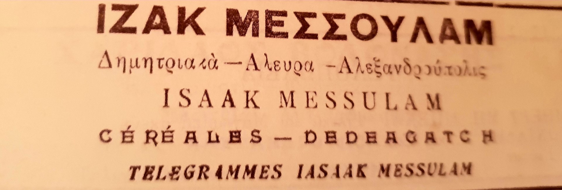 1928, Διαφήμιση του εβραϊκής καταγωγής, Αλεξανδρουπολίτη εμπόρου Ιζάκ Μεσσουλάμ. (Πηγή: Γειτονιές & Αναμνήσεις Αλεξανδρούπολης)