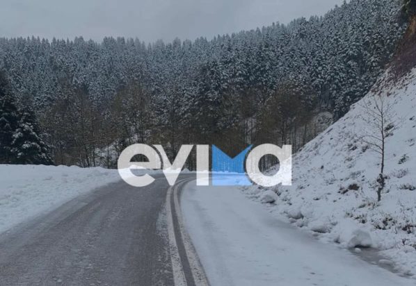 Το ανοιξιάτικο κύμα χιονιά πλήττει και τα ορεινά της Εύβοιας, με αποτέλεσμα αρκετές περιοχές να έχουν ντυθεί στα «λευκά».