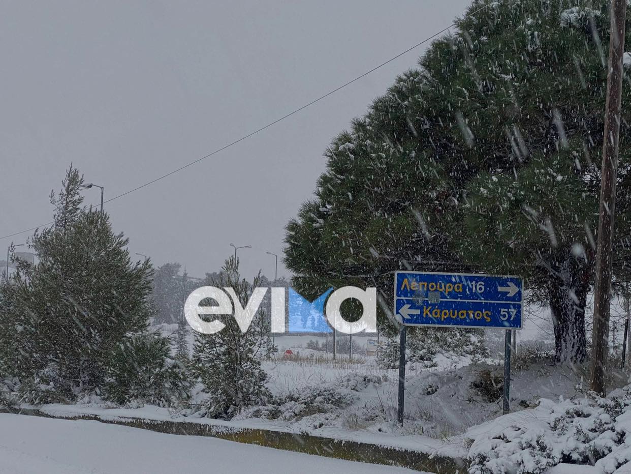 Η κακοκαιρία “Ελπίς” που σαρώνει τη χώρα σφυροκοπά με μανία και την Εύβοια. Θαμμένα στο χιόνι είναι σχεδόν όλα τα χωριά του Δήμου Κύμης Αλιβερίου, του δήμου Καρύστου, η Χαλκίδα, η Ερέτρια και αρκετές παραθαλάσσιες περιοχές του Νομού.