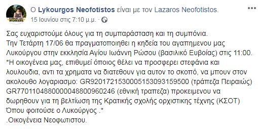 Τα social media του 21χρονου έχουν κατακλυστεί από μηνύματα αγάπης από γνωστούς και φίλους που δεν μπορούν να πιστέψουν ότι ο Λυκούργος έφυγε τόσο άδικα από τη ζωή.