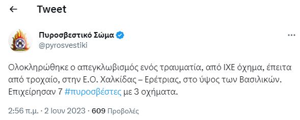 Ο 28χρονος διακομίστηκε σοβαρά τραυματισμένος στο Γενικό Νοσοκομείο Χαλκίδας όπου και χειρουργήθηκε και η κατάσταση του κρίνεται σοβαρή. Το Τμήμα Τροχαίας Χαλκίδας, διερευνά τα αίτια του τροχαίου.