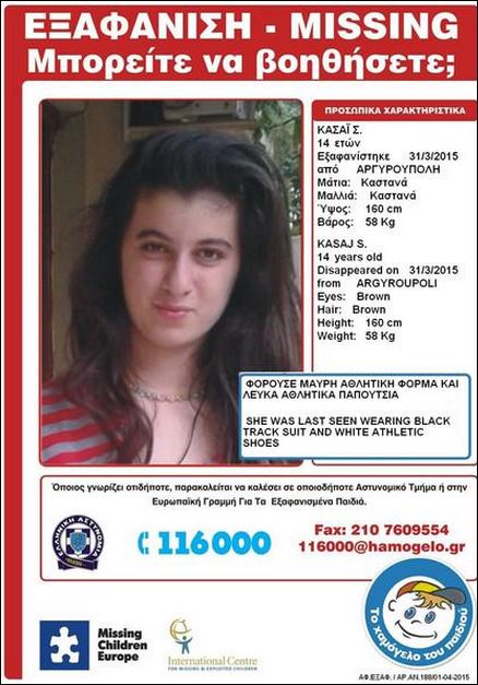 Στις 31/03/2015 το πρωί, εξαφανίστηκε από το σπίτι της στην Αργυρούπολη η Σαμάνθα Κ., 14 ετών.