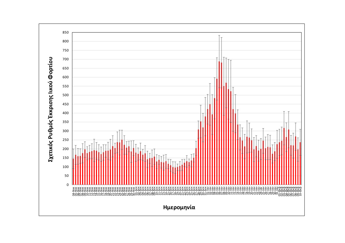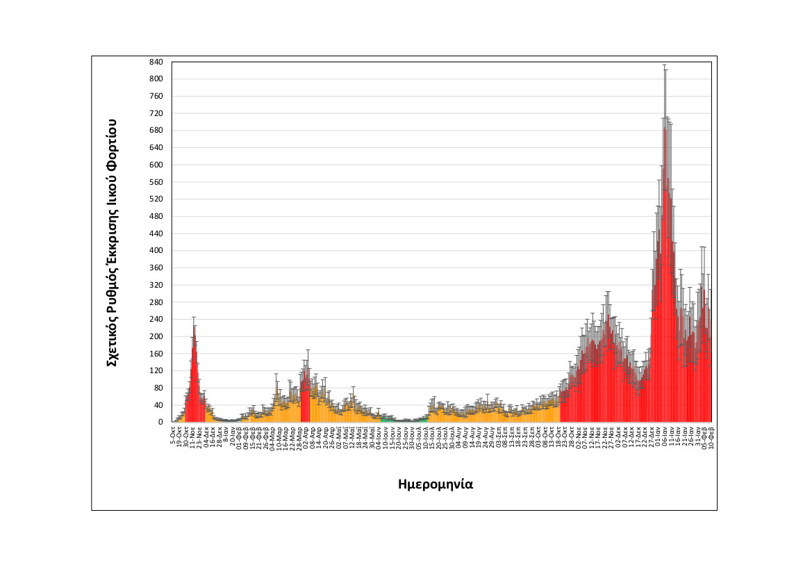 Όπως φαίνεται στα διαγράμματα που παρουσιάζει το ΑΠΕ-ΜΠΕ (επισυνάπτονται) από την αρχή της εβδομάδας καταγράφηκαν διακυμάνσεις μεταξύ των μετρήσεων, με τον κυλιόμενο εβδομαδιαίο μέσο όρο τους ωστόσο να δείχνει μια μικρή μείωση του ιικού φορτίου.