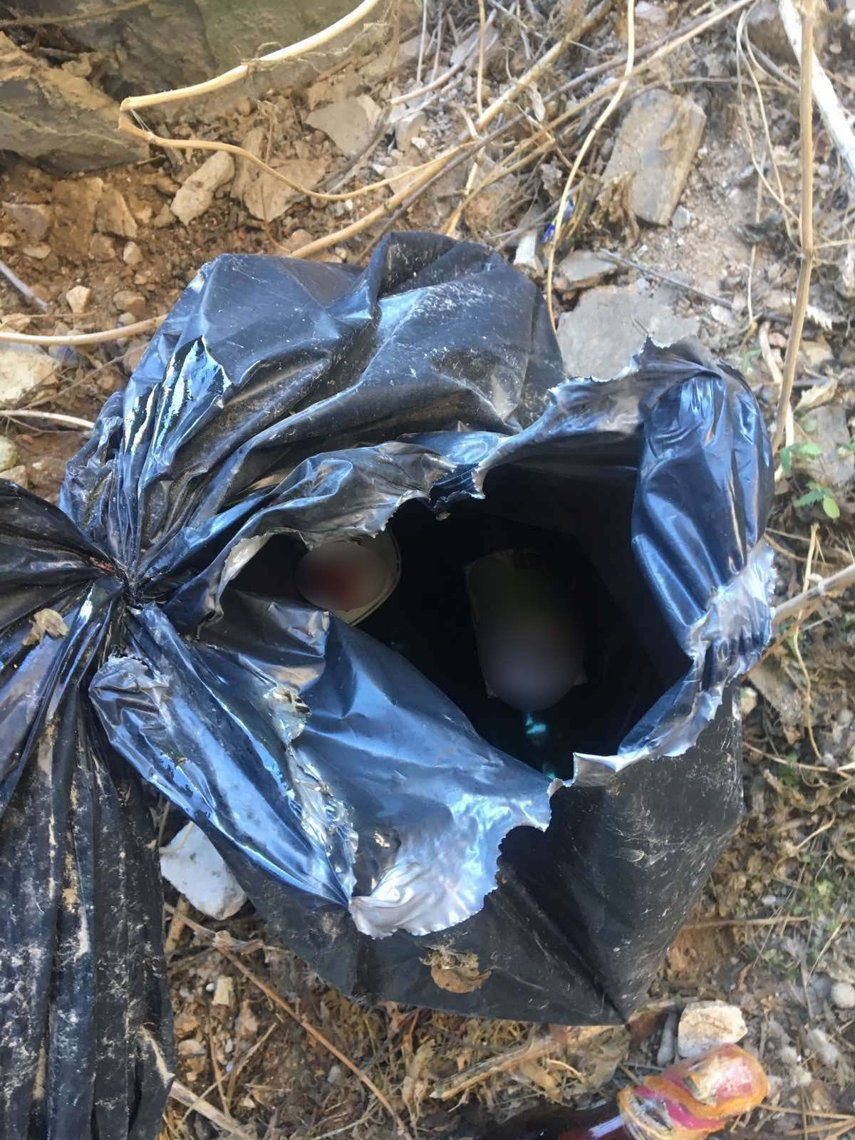Σύμφωνα με την ΕΛΑΣ, οι μολότοφ αποτελούνταν από γυάλινες φιάλες με προσαρμοσμένα στα στόμια τους κομμάτια υφάσματος, ενώ ορισμένες περιείχαν εύφλεκτο υγρό. Σημειώνεται ακόμη, ότι βρέθηκαν στο ίδιο σημείο ένα σακίδιο πλάτης και μεταλλικός κόφτης.