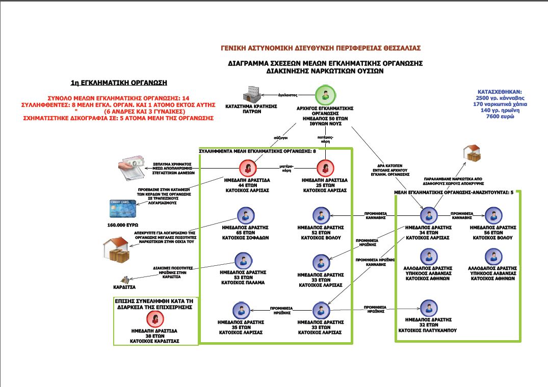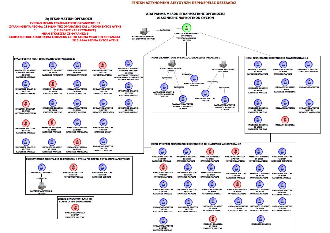 Σε ευρείας κλίμακας επιχειρήσεις που πραγματοποιήθηκαν σε Λάρισα, Τρίκαλα, Καρδίτσα και Βόλο συνελήφθησαν συνολικά 33 άτομα, από τα οποία τα τριάντα ένα 31 αποτελούν μέλη των εγκληματικών οργανώσεων και πραγματοποιήθηκαν 25 κατ’ οίκον έρευνες