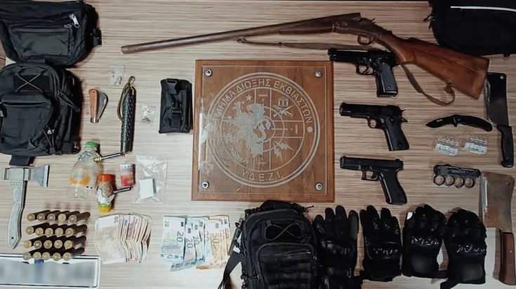 Στη δικογραφία που σχηματίστηκε για την υπόθεση περιλαμβάνεται ακόμη ένα άτομο, ενώ κατασχέθηκαν, μεταξύ άλλων, σιδερογροθιά, αναδιπλούμενο μαχαίρι και σουγιάς, αεροβόλα πιστόλια, τσεκούρι και μονόκαννο κυνηγετικό όπλο.