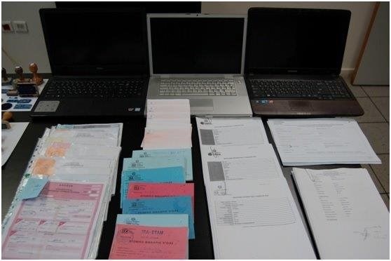 Κατά την διάρκεια των ερευνών, εντοπίστηκε εργαστήριο κατάρτισης πλαστών διοικητικών εγγράφων, όπου βρέθηκαν, εκτός των άλλων, και 33 σφραγίδες, που χρησιμοποιούνταν για τη κατάρτιση εξαρχής πλαστών εγγράφων ή για τη νοθεία γνησίων.