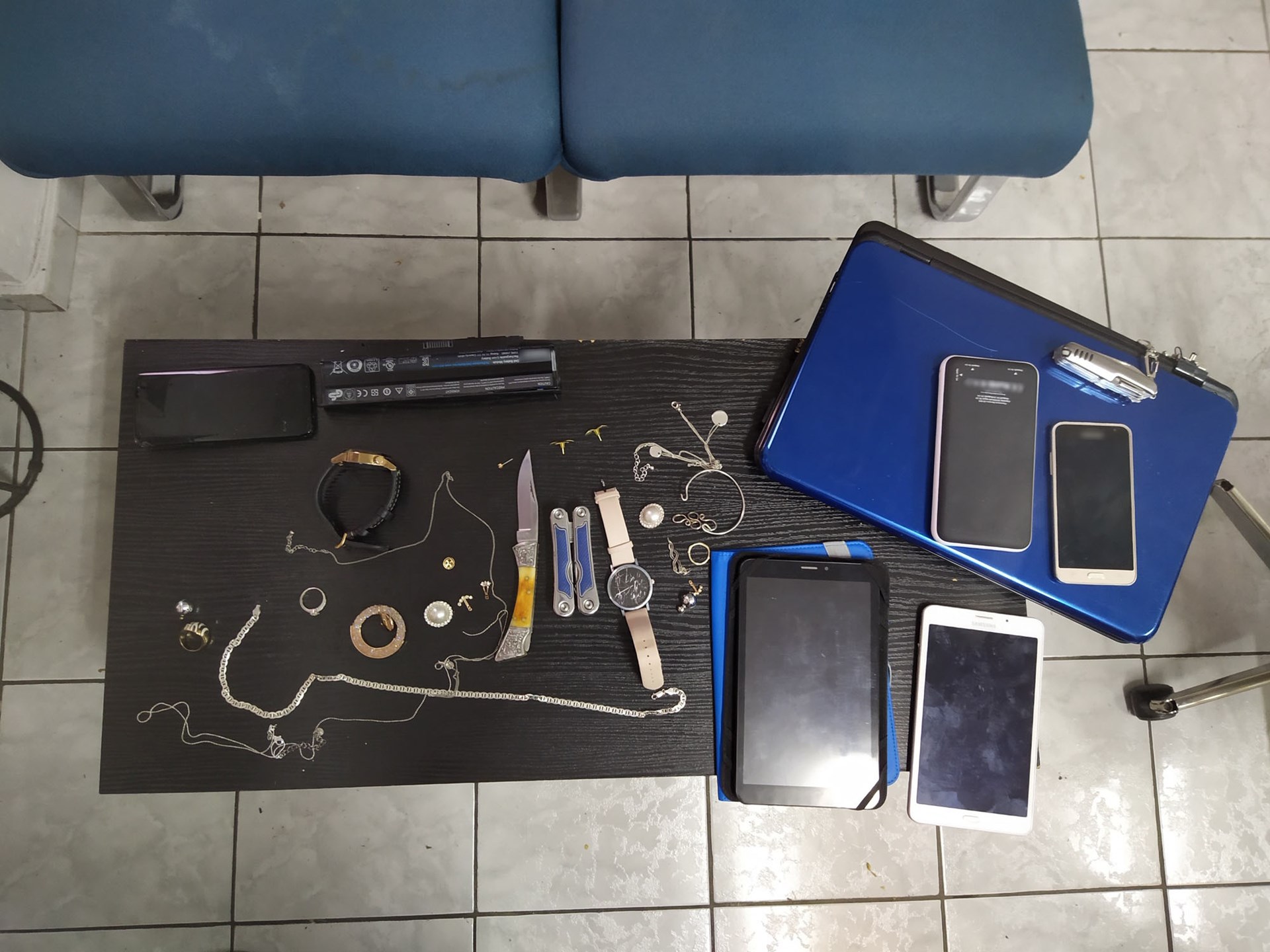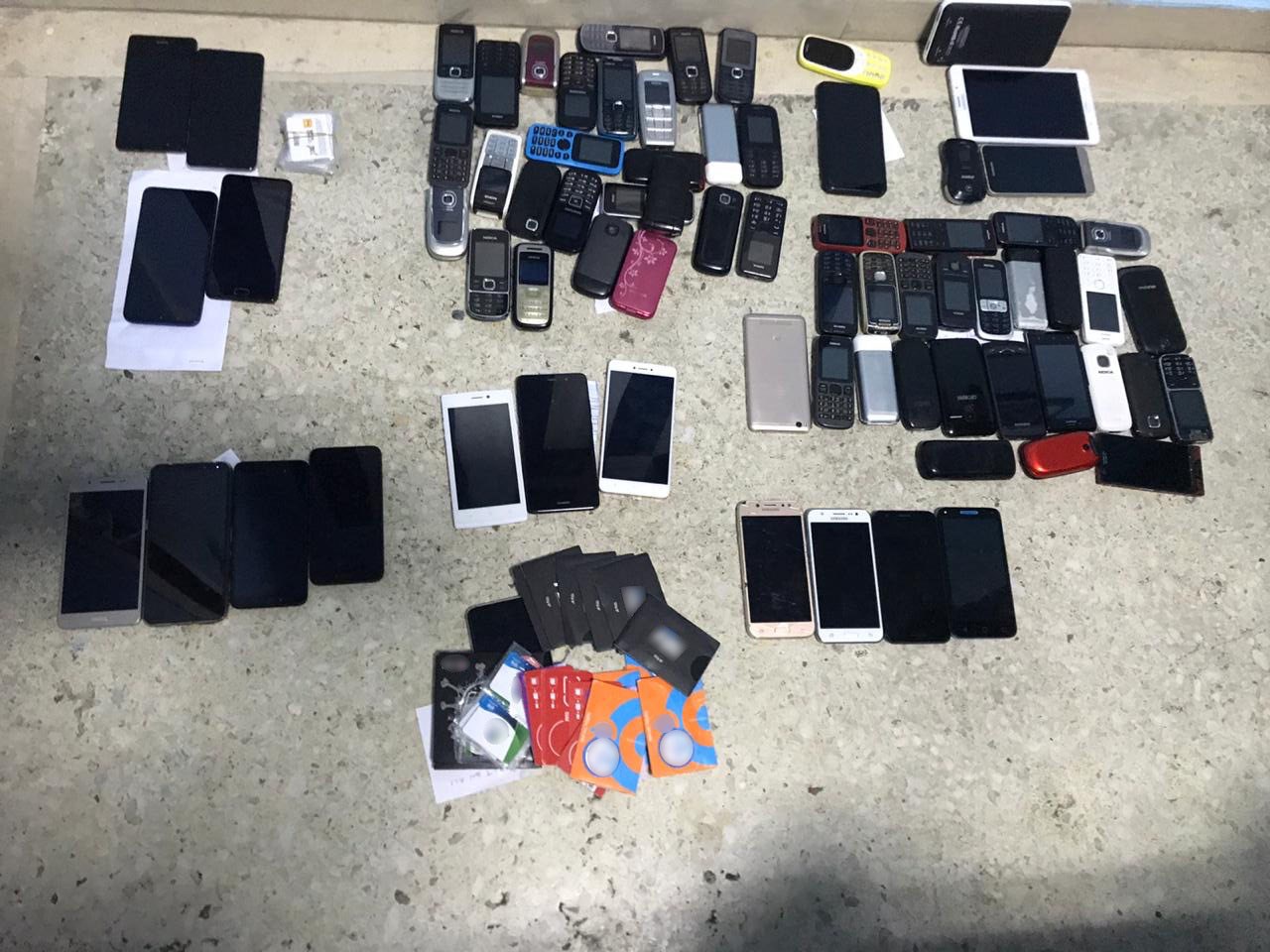 Στις έρευνες που πραγματοποιήθηκαν βρέθηκαν και κατασχέθηκαν: 169 κινητά τηλέφωνα, 53 ηλεκτρονικές συσκευές tablet, 228 εξαρτήματα κινητών τηλεφώνων, 16 μαχαίρια, πτυσσόμενα στιλέτα και σουγιάδες, 115 κάρτες SIM, το χρηματικό ποσό των 1.790 ευρώ, δύο τηλεοράσεις και πλήθος κοσμημάτων. Η αξία των αφαιρεθέντων αντικειμένων και χρηματικών ποσών υπολογίζεται ότι ξεπερνά τις 180.000 ευρώ.