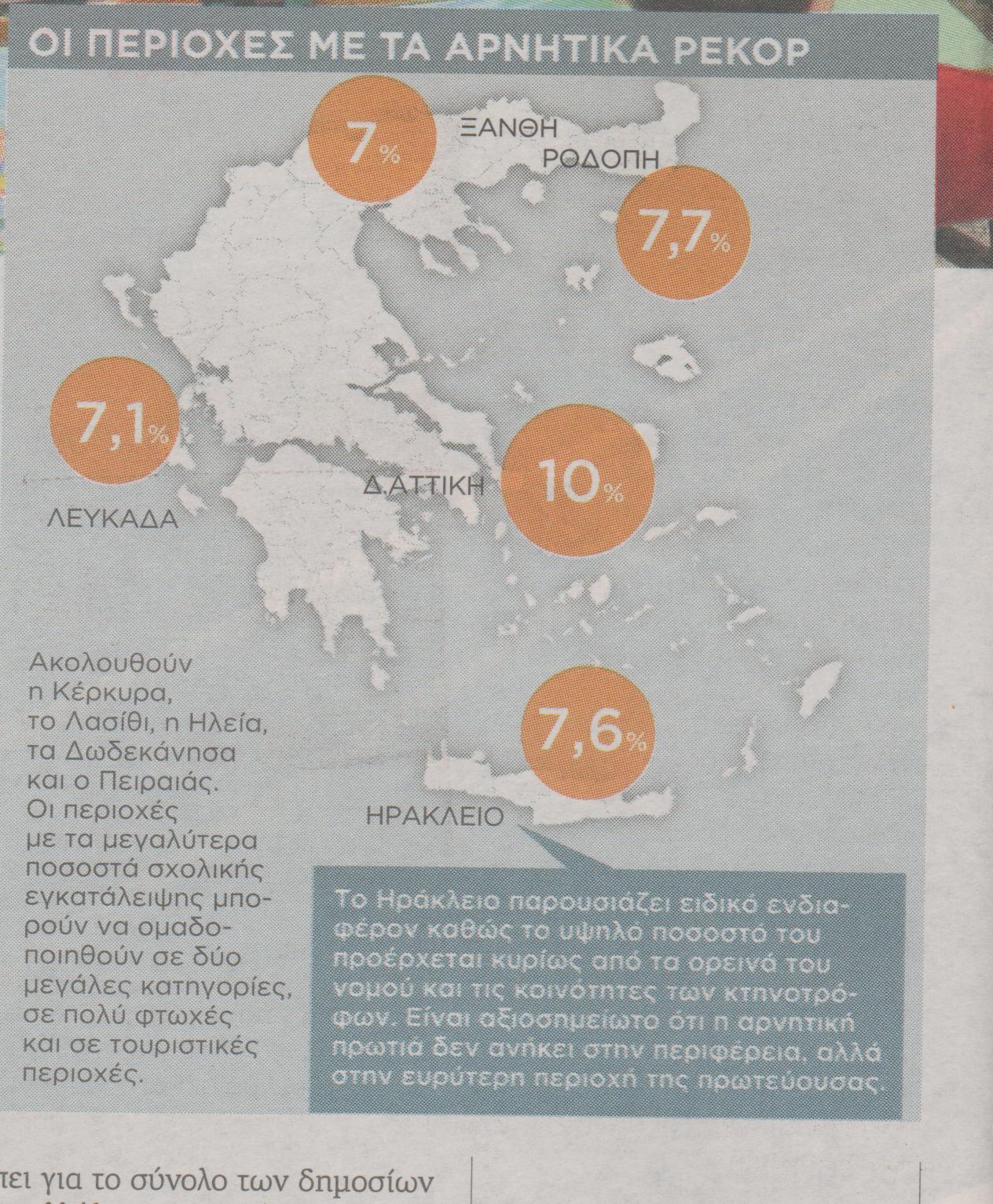 Σύμφωνα με την εφημερίδα «Τύπος της Κυριακής» τα «κενά του Δημοτικού» ενοχοποιούνται για τη σχολική αποτυχία στο Γυμνάσιο και το Λύκειο σπρώχνοντας κάθε χρόνο έξω από τη δευτεροβάθμια εκπαίδευση περίπου 70.000-80.000 μαθητές, αριθμοί που υπερβαίνουν το 10% του μαθητικού πληθυσμού στη δημόσια εκπαίδευση. Από τους μαθητές που εμφανίζονται στο «κάδρο» της σχολικής αποτυχίας, περίπου 40.000 εγκαταλείπουν το σχολείο και χάνονται σε άγνωστες κοινωνικές διαδρομές, όπου δεν μπορούν να τους εντοπίσουν οι επίσημες στατιστικές. Οι υπόλοιποι είναι όσοι κάθε χρόνο «κόβονται» και βρίσκονται με το ένα πόδι έξω από το σχολείο, αναγκασμένοι να επαναλάβουν την τάξη. Αν τα καταφέρουν, υπάρχουν πιθανότητες να συνεχίσουν το σχολείο. Οι στατιστικές λένε ότι όσοι απορρίπτονται για δεύτερη φορά συνήθως ρίχνουν πίσω τους μαύρη πέτρα.