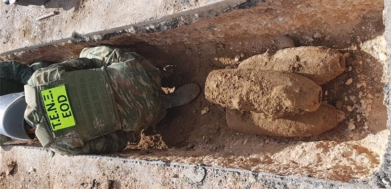 Επτά βόμβες 120 λιβρών και 2 πυροσωλήνες βομβών περισυνέλλεξαν ναρκαλιευτές του Τάγματος Εκκαθάρισης Ναρκοπεδίων Ξηράς από κεντρικό δρόμο στο Δήμο Ιλίου, κατόπιν σχετικού αιτήματος.Στο πλαίσιο της κοινωνικής προσφοράς του Στρατού Ξηράς, εξειδικευμένο προσωπικό (Ναρκαλιευτές EOD) του Τάγματος Εκκαθάρισης Ναρκοπεδίων Ξηράς (ΤΕΝΞ), συνέδραμε, κατόπιν υποβολής σχετικού αιτήματος, σε περιστατικό αναγνώρισης πολεμικού υλικού (πυρομαχικού), που εντοπίστηκε κατά τη διάρκεια χωματουργικών εργασιών σε κεντρική οδό στο Δήμο Ιλίου.Δείτε τις φωτογραφίες: