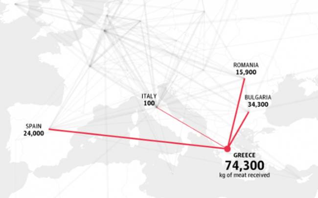 Όπως αποκαλύπτει η εφημερίδα, στην Ελλάδα καταναλώθηκαν περισσότερα από 74.000 κιλά αλογίσιου κρέατος, ενώ περισσότεροι από 60.000 τόνοι κρέατος ιπποειδών διανεμήθηκαν στο εμπόριο από και προς τις χώρες της Ευρώπης μέσα στο 2012.