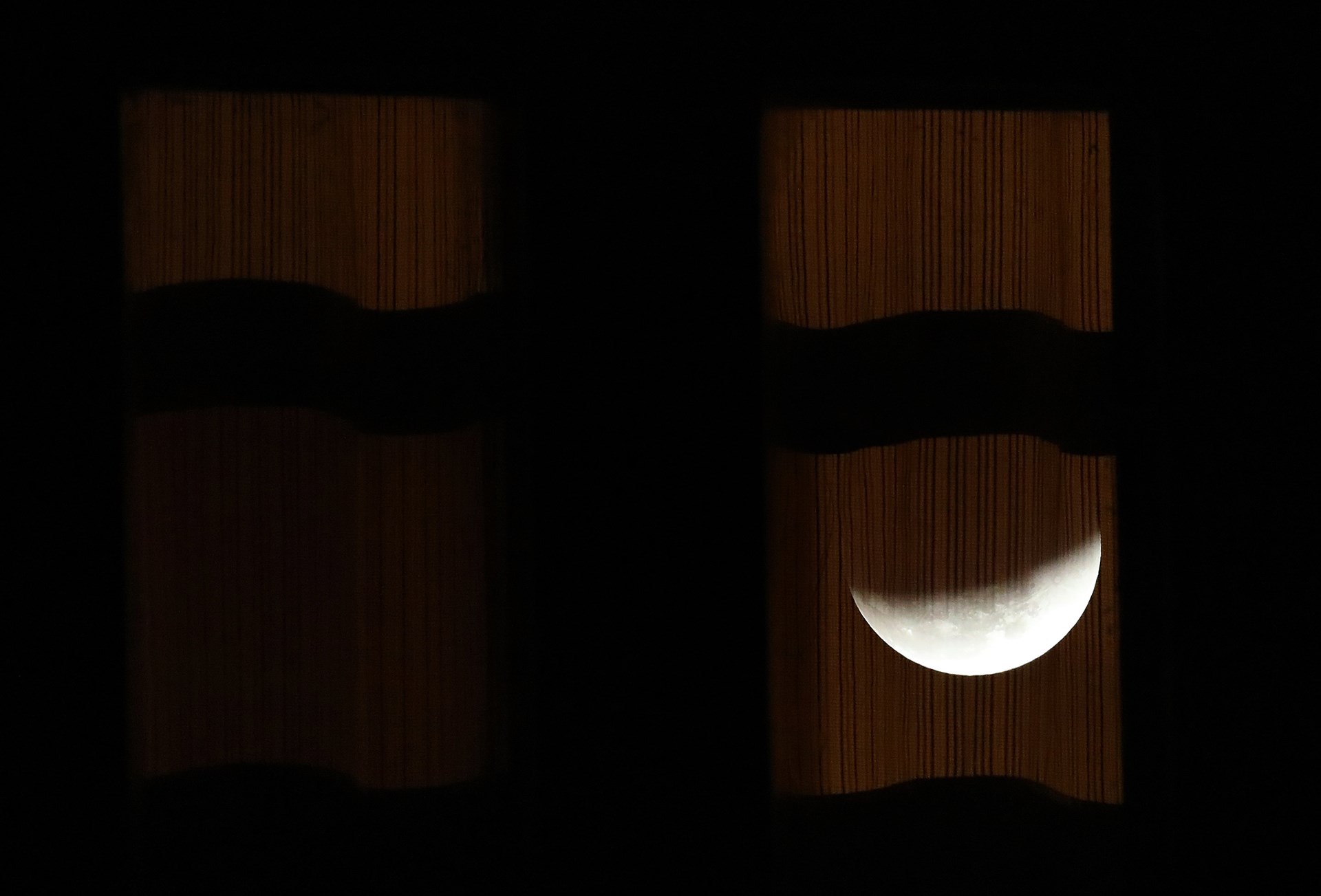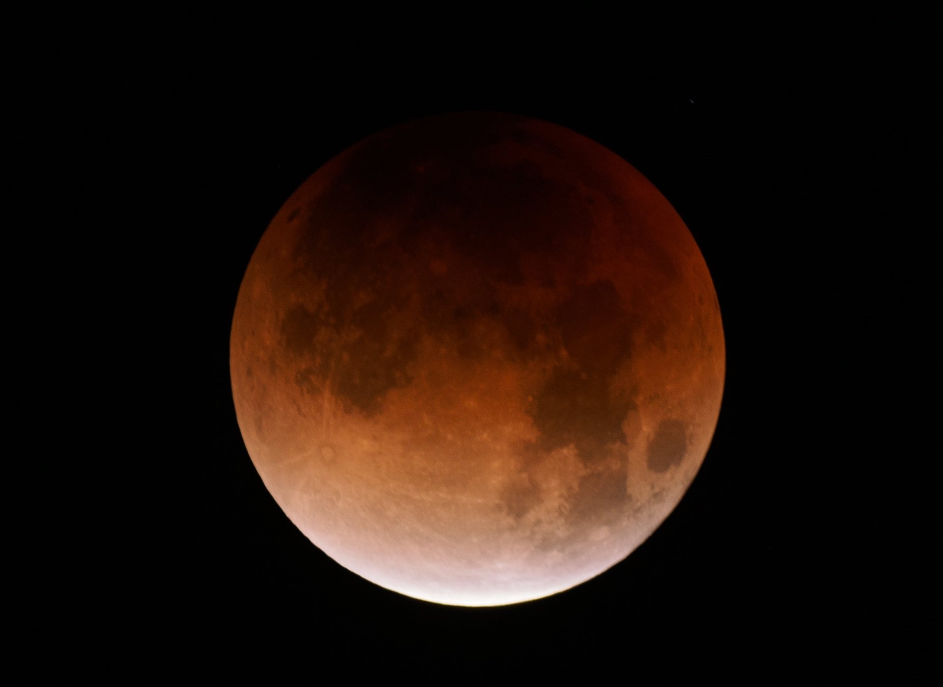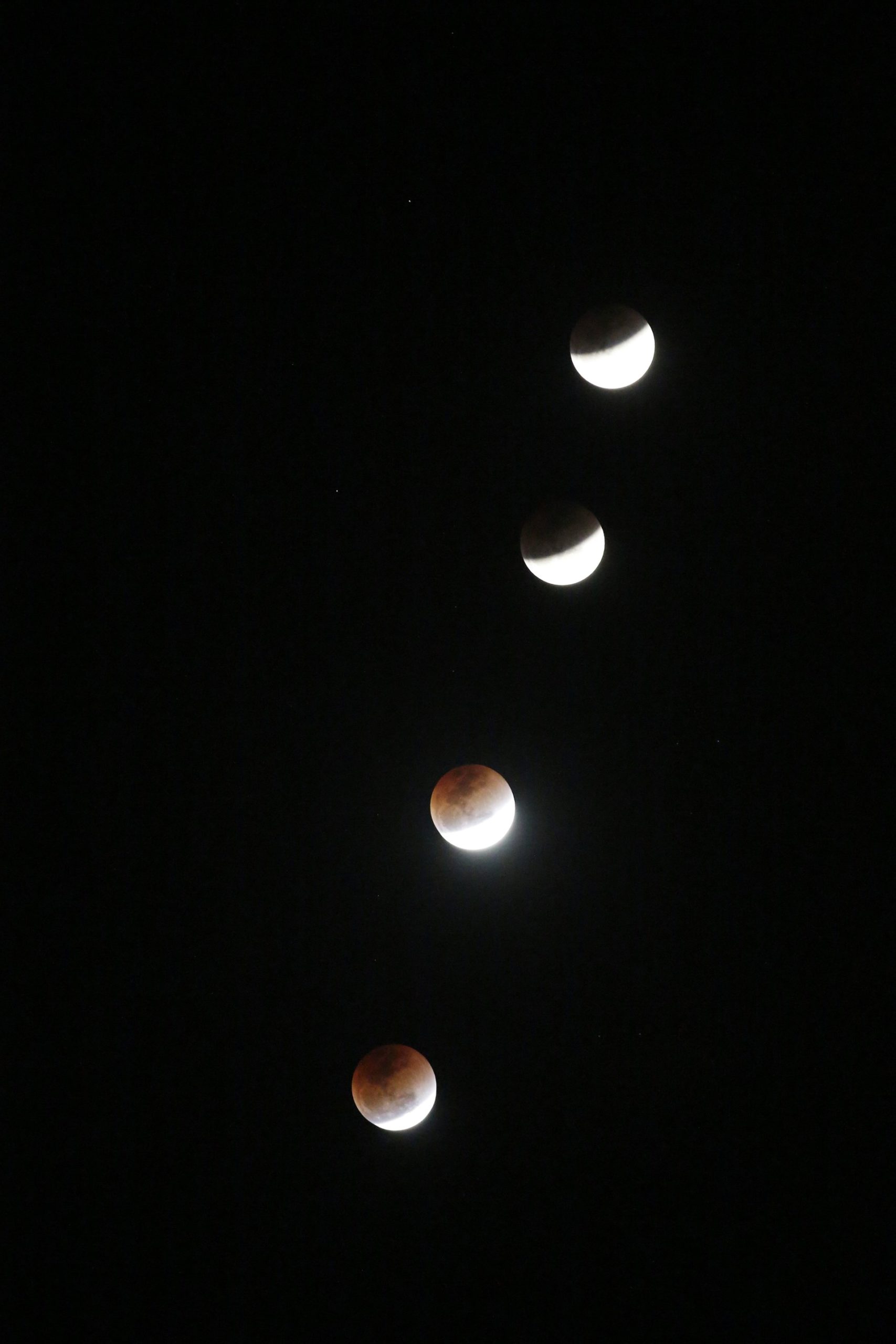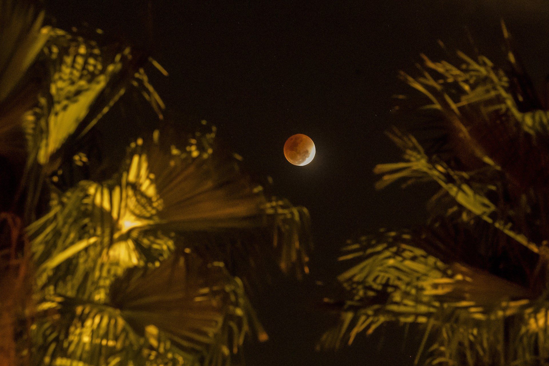 Η έκλειψη ξεκίνησε περίπου 15 λεπτά αργότερα, καθώς μια μαύρη σκιά άρχισε να καλύπτει τη λευκή υπέρ-Σελήνη. Μια ώρα μετά, το φεγγάρι χάθηκε τελείως κι όταν επανεμφανίστηκε η επιφάνειά του είχε πάρει το χρώμα του χαλκού. “Το κόκκινο χρώμα κατά τη διάρκεια μιας σεληνιακής έκλειψης είναι πολύ ιδιαίτερο, είναι ένα σπάνιο δώρο να μπορέσουμε να παρακολουθήσουμε ένα ματωμένο φεγγάρι”, σχολίασε ο καθηγητής φυσικής Μπράιαν Ράτσφορντ. Η κόκκινη ή χάλκινη απόχρωση είναι ένα φυσικό φαινόμενο που οφείλεται στο φιλτράρισμα του ηλιακού φωτός από τη γήινη ατμόσφαιρα.