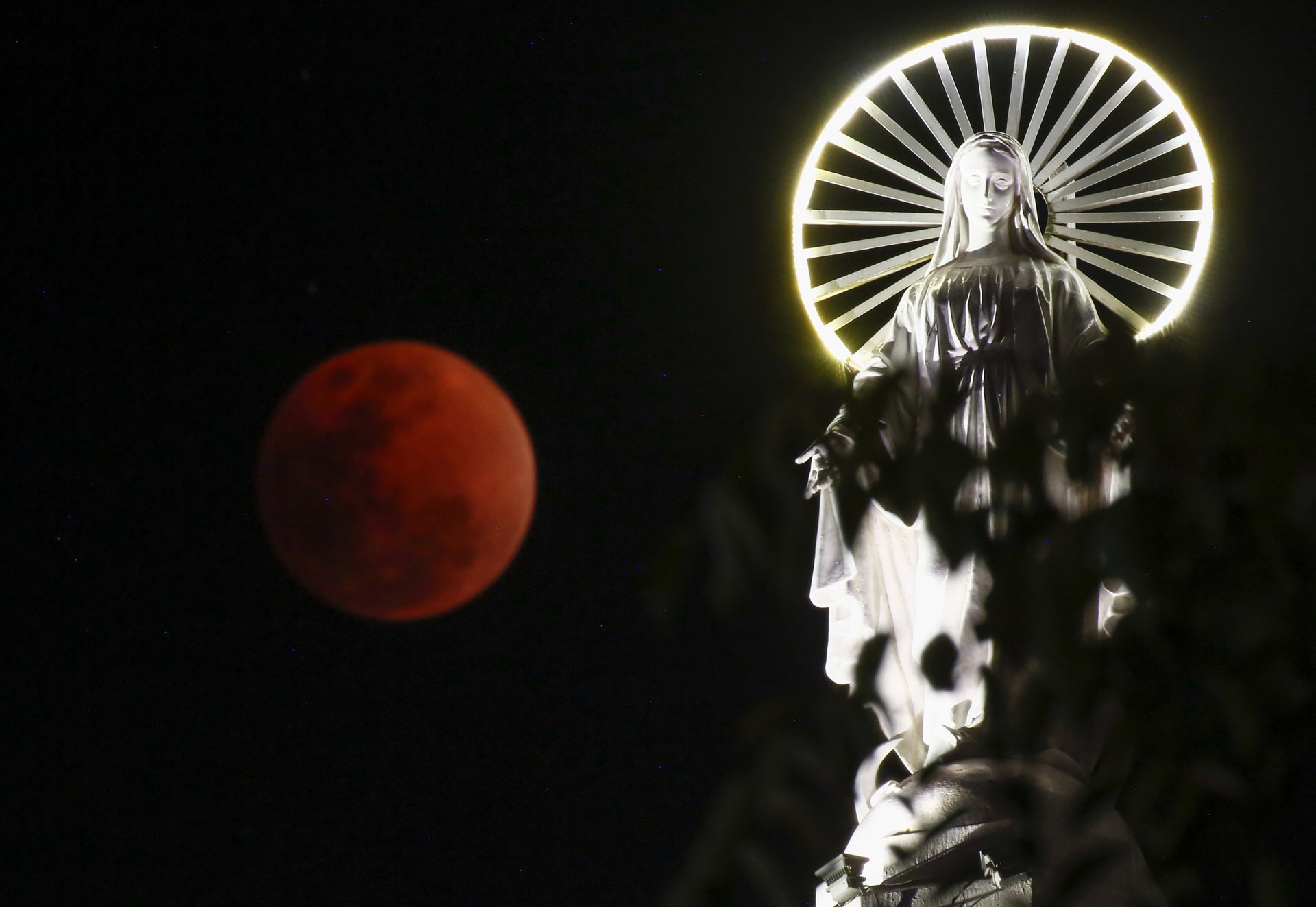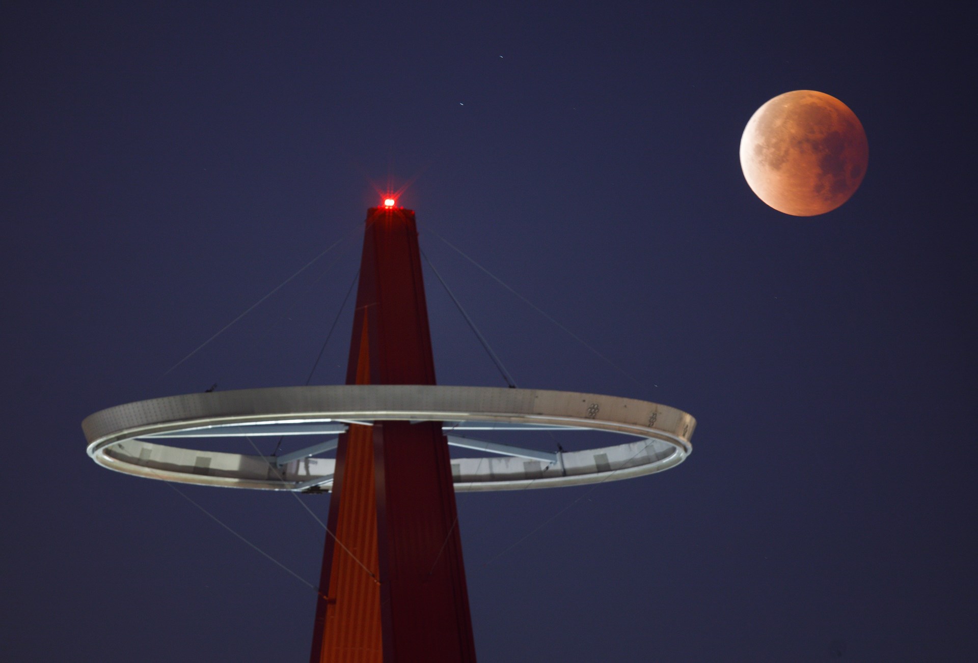 Χιλιάδες άνθρωποι συγκεντρώθηκαν στην Καλιφόρνια για να δουν τη Σελήνη να χάνεται, κρυμμένη από τη σκιά της Γης και μετά να επανεμφανίζεται κατακόκκινη, εξ ου και η ονομασία “ματωμένο φεγγάρι”.