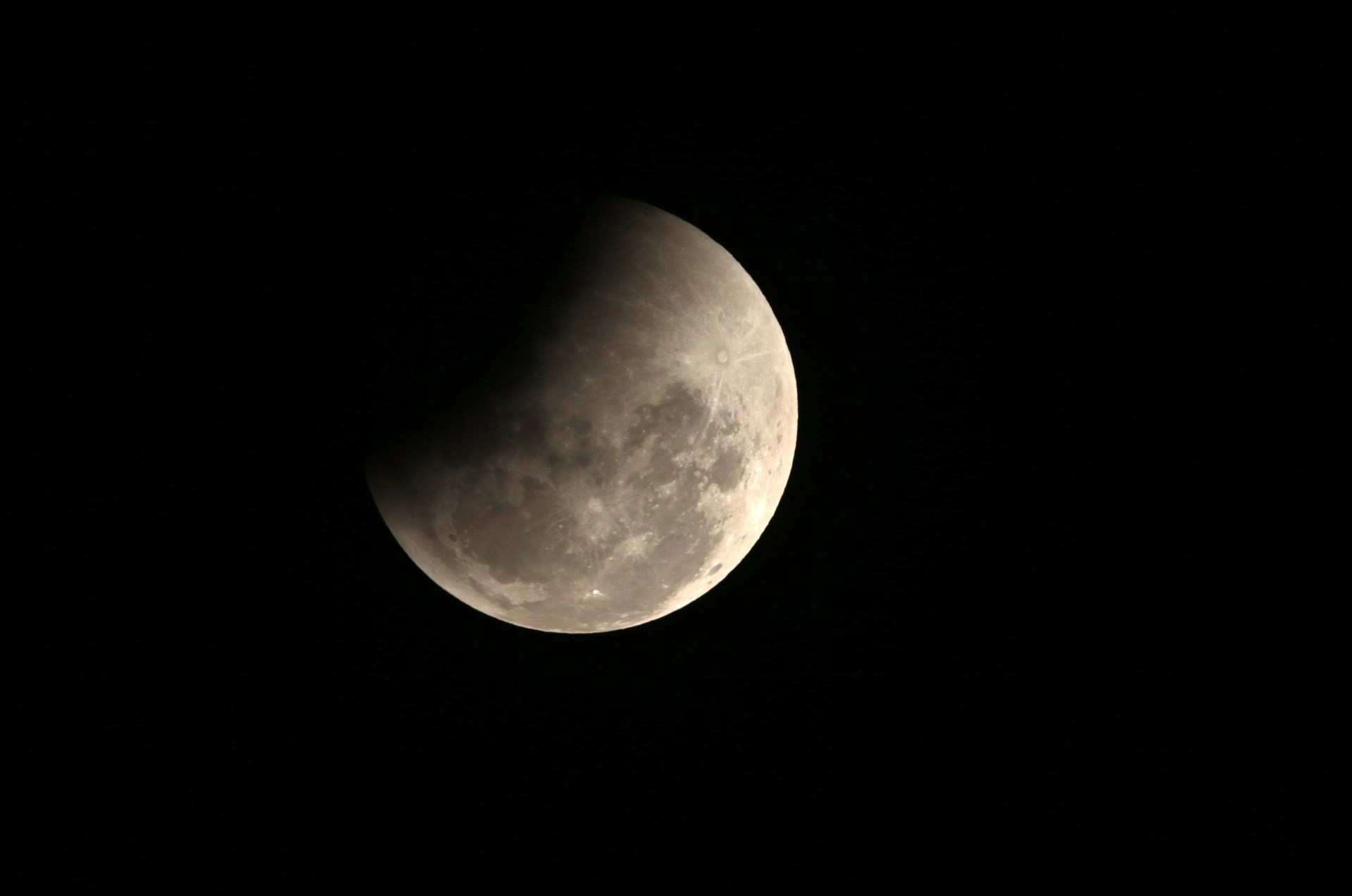 Η έκλειψη ξεκίνησε περίπου 15 λεπτά αργότερα, καθώς μια μαύρη σκιά άρχισε να καλύπτει τη λευκή υπέρ-Σελήνη. Μια ώρα μετά, το φεγγάρι χάθηκε τελείως κι όταν επανεμφανίστηκε η επιφάνειά του είχε πάρει το χρώμα του χαλκού. “Το κόκκινο χρώμα κατά τη διάρκεια μιας σεληνιακής έκλειψης είναι πολύ ιδιαίτερο, είναι ένα σπάνιο δώρο να μπορέσουμε να παρακολουθήσουμε ένα ματωμένο φεγγάρι”, σχολίασε ο καθηγητής φυσικής Μπράιαν Ράτσφορντ. Η κόκκινη ή χάλκινη απόχρωση είναι ένα φυσικό φαινόμενο που οφείλεται στο φιλτράρισμα του ηλιακού φωτός από τη γήινη ατμόσφαιρα.