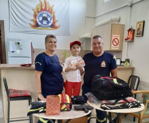 Ο μικρός Κώστας από την πλευρά του, ήταν κατακλυσμένος από χαρά, αφού οι πυροσβέστες του έκαναν και μία μικρή ξενάγηση στον χώρο τους, εξηγώντας του με κάθε λεπτομέρεια τον εξοπλισμό τους. «Εκείνος έκανε πάρα πολλές ερωτήσεις, παρόλο που ήταν αρκετά ενημερωμένος» λέει ο παππούς του.