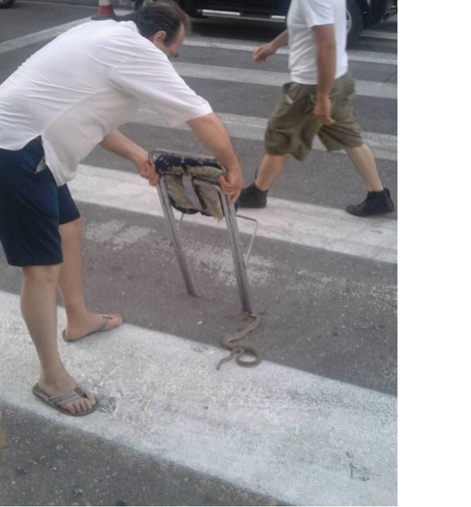 Το μικρό φίδι, άγνωστο πως, βρέθηκε σε κεντρικό σημείο της οδού Μανωλοπούλου.