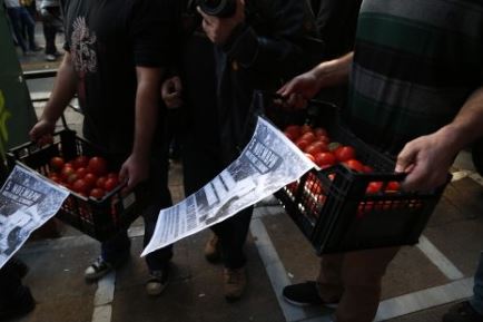 Σύμφωνα με το ρεπορτάζ της ΕΡΤ, όταν η πορεία έφτασε ύψος του υπουργείου Εργασίας, φοιτητές της Γεωπονικής άδειασαν, συμβολικά, 3 καφάσια με ντομάτες στην είσοδο του κτιρίου, ως ένδειξη διαμαρτυρίας για την αύξηση της φορολογίας των αγροτών.