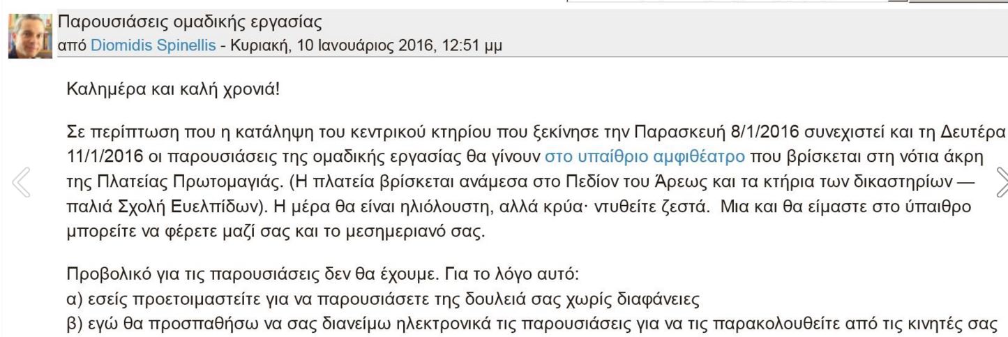 Το παράδοξο αυτό περιστατικό έκανε γνωστό με ανάρτηση του στο Facebook o καθηγητής στο Τμήμα Διοικητικής Επιστήμης και Τεχνολογίας και διευθυντής του εργαστηρίου Πληροφοριακών Τεχνολογιών και Συστημάτων Διοίκησης, o Διομήδης Σπινέλλης, ενώ παράλληλα, ανέβασε φωτογραφίες από το σημείο όπου οι φοιτητές παρουσίασαν τις εργασίες τους.