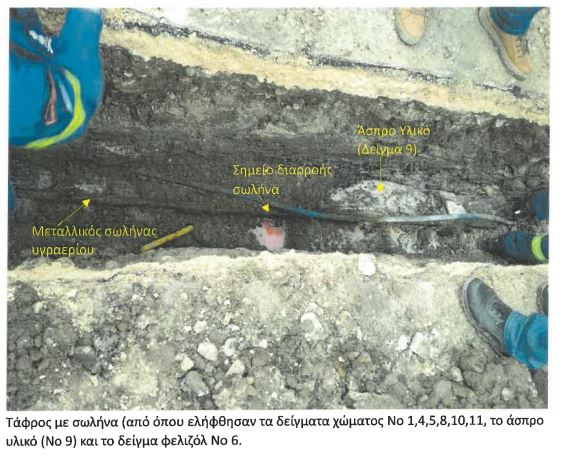 Σχετικά με το δείγμα από σωλήνα, που αφορά τμήμα υπόγειας σωλήνωσης που συνδέει τις δύο υπέργειες δεξαμενές υγραερίου του εργοστασίου, επισημαίνεται «η εξωτερική του επιφάνεια φέρει σημάδια διάβρωσης, η οποία όμως είναι επιφανειακή, λόγω της υγρασίας του περιβάλλοντος χώματος και των υδατοδιαλυτών χλωριόντων και θειικών ιόντων του. Η εν λόγω διάβρωση όμως δεν φαίνεται να διατρέχει το πάχος του σωλήνα ώστε να προκαλέσει διαρροή του ρευστού σε αυτό το τμήμα του αγωγού. Κατά την εξέταση τεσσάρων εγκάρσιων τομών στον αγωγό δεν προέκυψε τοπική διάβρωση».