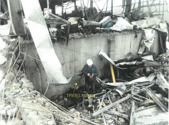 Στο δείγμα αέρα που ελήφθη από οπή στον τσιμεντένιο τοίχο του υπογείου, ανιχνεύθηκε η παρουσία υγραερίου (προπάνιο, ισοβουτάνο, βουτάνιο), και όπως αναγράφεται η συγκεκριμένη τρύπα «φαίνεται να επικοινωνεί με το εσωτερικό της κατασκευής». Η παρουσία των ίδιων αερίων επιβεβαιώθηκε και σε δείγμα χώματος που ελήφθη από τάφρο προ εκσκαφής σε βάθος 1,15 μέτρων από τον αύλειο χώρου το εργοστασίου, καθώς και σε χώμα στο σημείο της εισαγωγής στο κτίριο.
