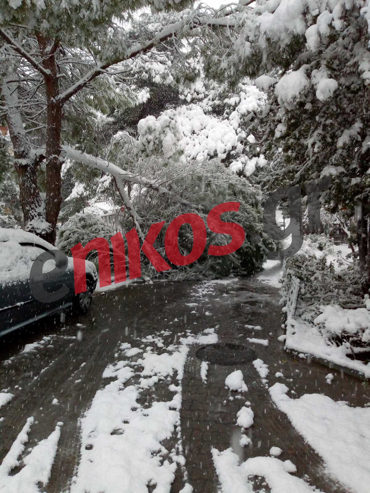 Πάρα πολλά δέντραέχουν πέσει στην Αττική λόγω χιονιού προκαλώντας προβλήματα στην ηλεκτροδότηση. Στην Αγία Παρασκευή, όπως αναφέρει αναγνώστης του enikos.gr έχει πέσει ένα δέντρο στην οδό Προφήτου Ηλία, ενώ ένα κλαδί είναι έτοιμο να κόψει το καλώδιο της ΔΕΗ. Σύμφωνα με τον αναγνώστη, έχουν ειδοποιήσει Δήμο-Πυροσβεστική-ΔΕΗ όμως δεν έχει φτάσει κανείς ακόμα στο σημείο.