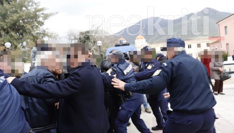 Σύμφωνα με το neakriti.gr, κατά τη διάρκεια της έντασης και των επεισοδίων προκλήθηκαν ζημιές σε περιπολικό.