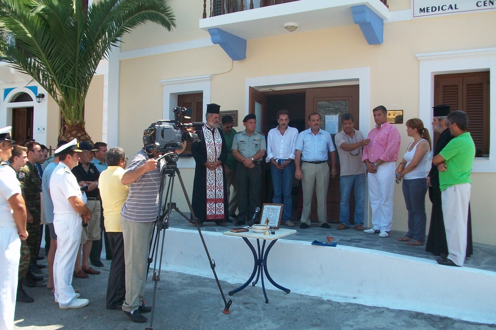 Ο κ.Πατούλης και ο κ.Πανηγύρης με τη βουλευτή Νοτίου Αιγαίου Μ.Ιατρίδη, τον Αντιπεριφερειάρχη Νοτίου Αιγαίου Φ. Χατζηιδιάκο , το Στρατηγό Ν. Δεβετζή, τον αντιπρόεδρο Ιατρικού Συλλόγου Αθηνών Α. Ρέντη και εκπροσώπους των φορέων στα εγκαίνια του παραρτήματος Μεγίστης του Ιατρείου Κοινωνικής Αποστολής που τελέστηκαν από το Συνταγματάρχη Πάτερ Ν. Βελεγράκη Διευθυντή Σ.Ι.ΓΕΝ και τον εφημέριο του Καστελλόριζου Πάτερ Γεώργιο.
