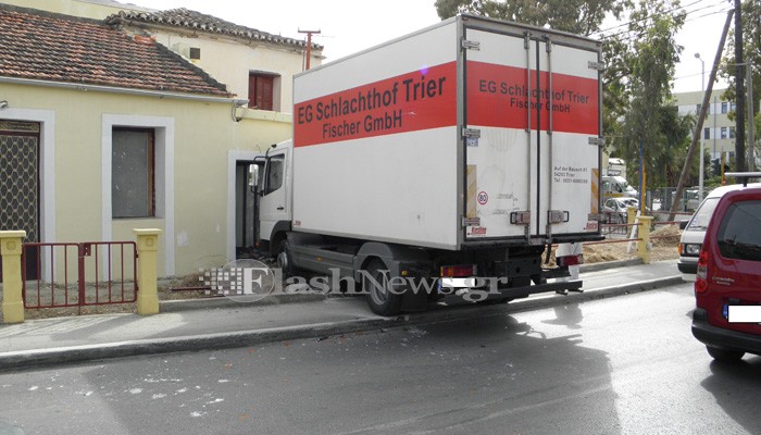 «Άγιο» είχαν οι ιδιοκτήτες μιας μονοκατοικίας, όταν είδαν ένα μεγάλο φορτηγό να “γκρεμίζει” την είσοδο του σπιτιού τους, στα Χανιά, διαφεύγοντας τον κίνδυνο.