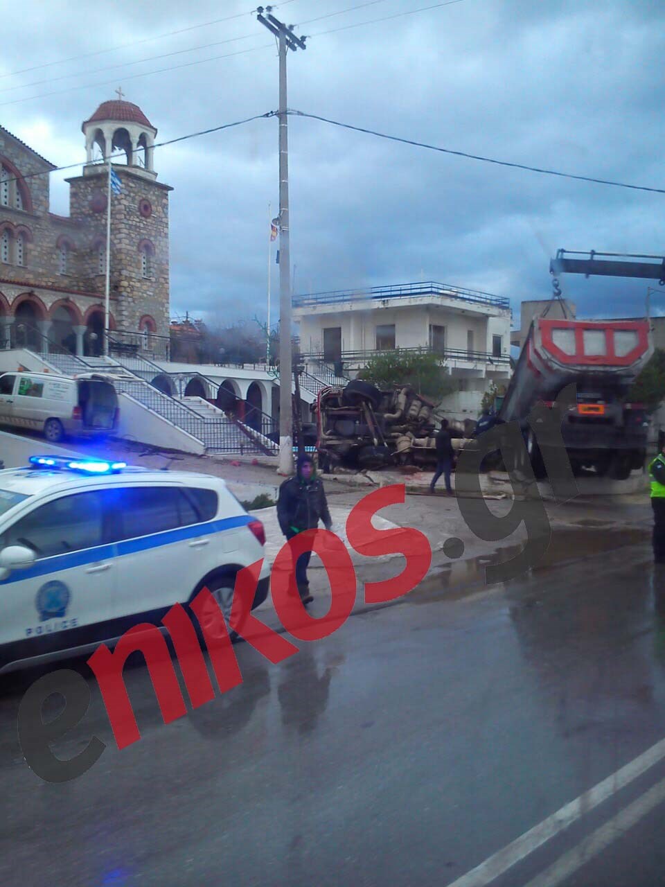 Ένα …αναποδογυρισμένο φορτηγό, μέσα στην αυλή του Ιερού Ναού των Ευβοέων Αγίων Χαλκίδας, αντίκρισαν το πρωί οι διερχόμενοι από το σημείο.