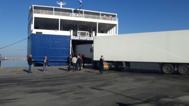 Σήμερα, από τις 7 το πρωί, οι νταλίκες είχαν μπει σε μία… σειρά με τους υπαλλήλους να ζυγίζουν το βάρος τους. Αυτήν την ώρα βρίσκεται σε πλήρη εξέλιξη η διαδικασία φόρτωσης των νταλικών στα πλοία της γραμμής.