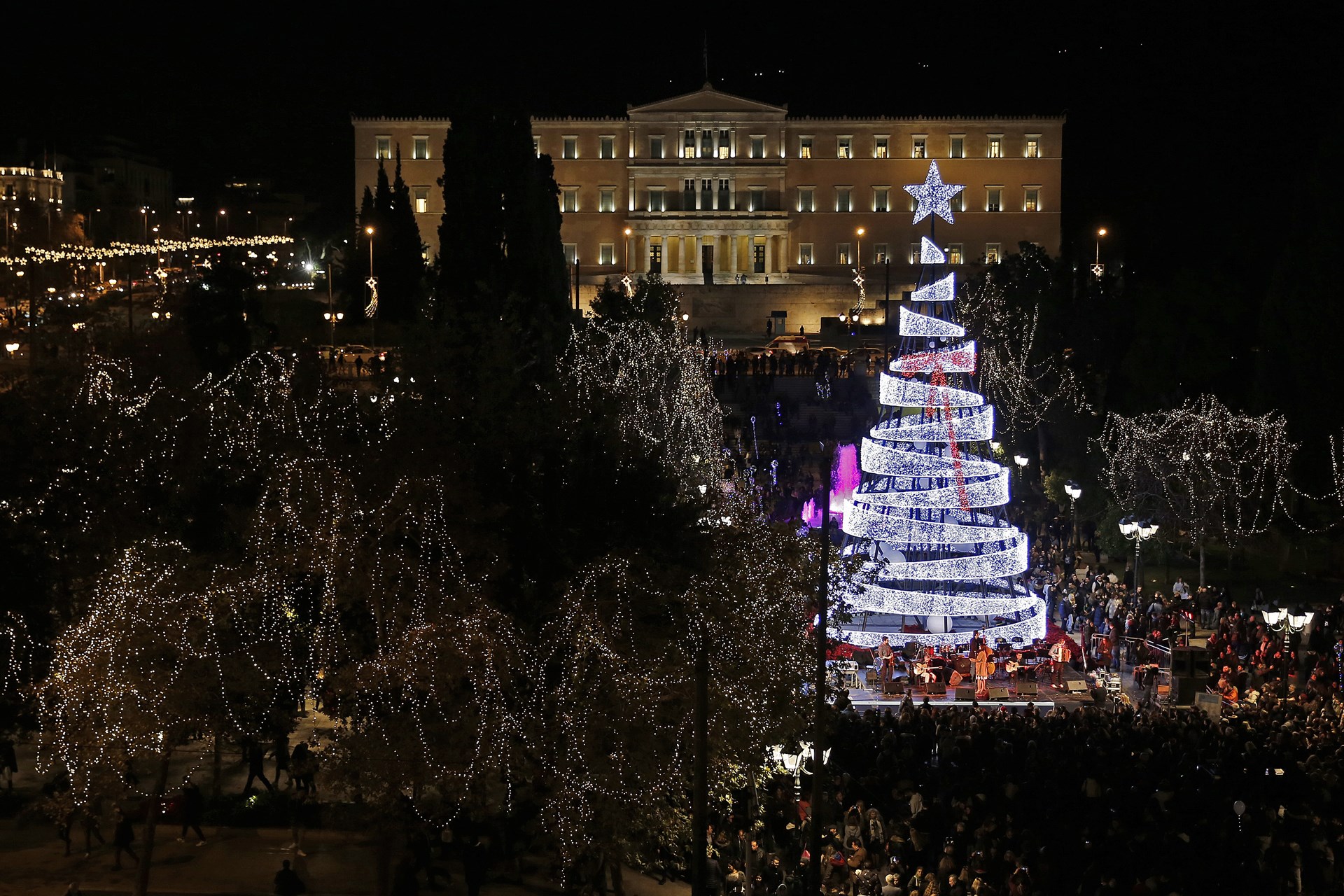 Με το σύνθημα «οι ημέρες των Χριστουγέννων και της Πρωτοχρονιάς είναι μέρες χαράς, μέρες ελπίδας» έγινε η φωταγώγηση του χριστουγεννιάτικου δέντρου στην πλατεία Συντάγματος.