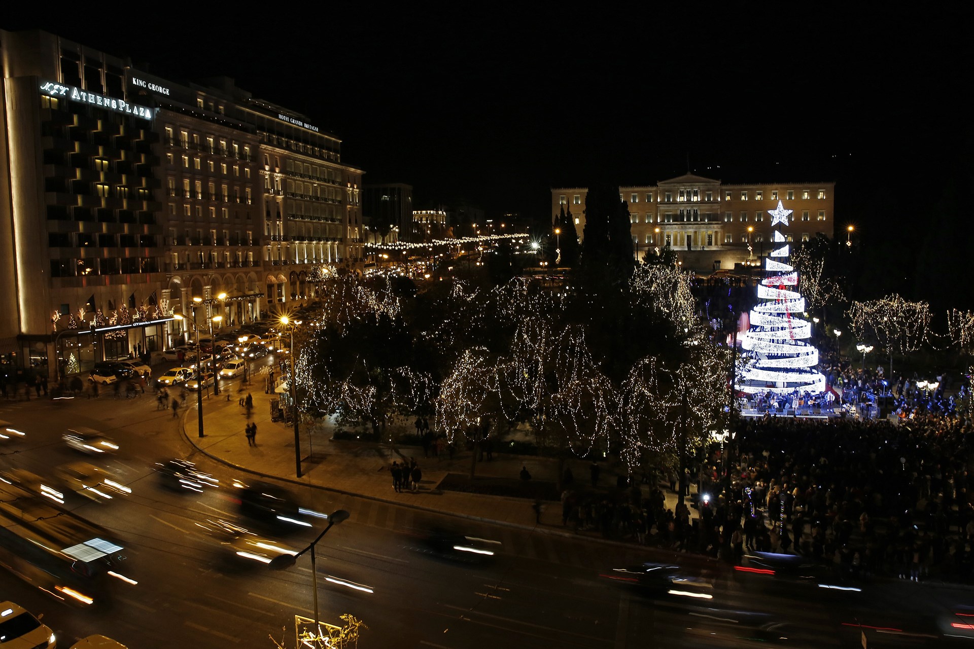 Με το σύνθημα «οι ημέρες των Χριστουγέννων και της Πρωτοχρονιάς είναι μέρες χαράς, μέρες ελπίδας» έγινε η φωταγώγηση του χριστουγεννιάτικου δέντρου στην πλατεία Συντάγματος.