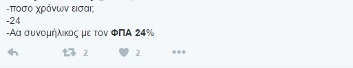 Δείτε ενδεικτικά κάποια από τα χιουμοριστικά tweets για την αύξηση του ΦΠΑ.