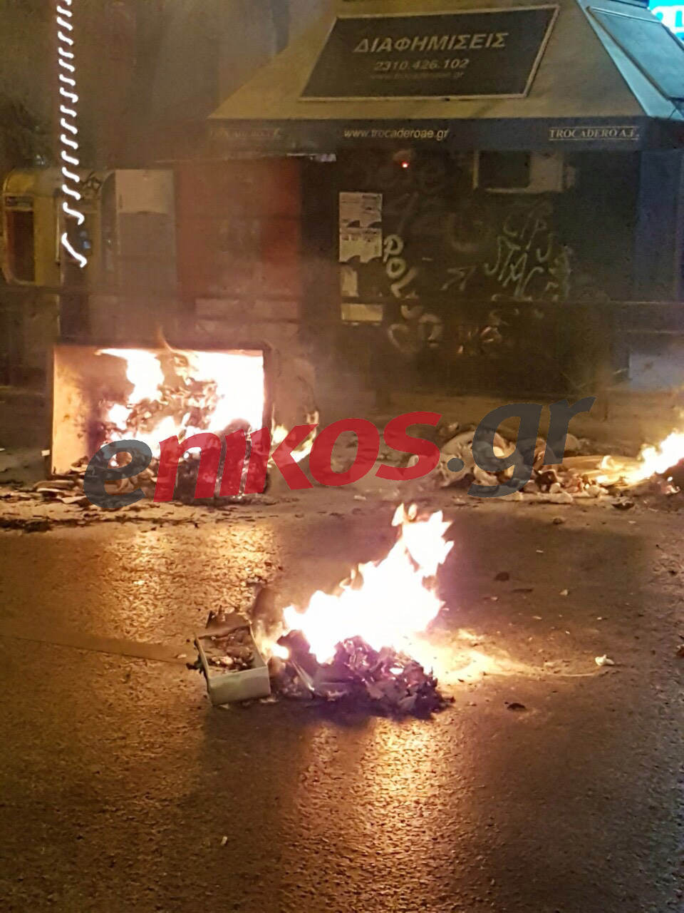 Φωτιά σε κάδους απορριμμάτων έβαλαν κάποιοι από τους διαδηλωτές που πήραν μέρος στην πορεία κατά της επίσκεψης του Προέδρου των ΗΠΑ Μπάρακ Ομπάμα στην Ελλάδα.