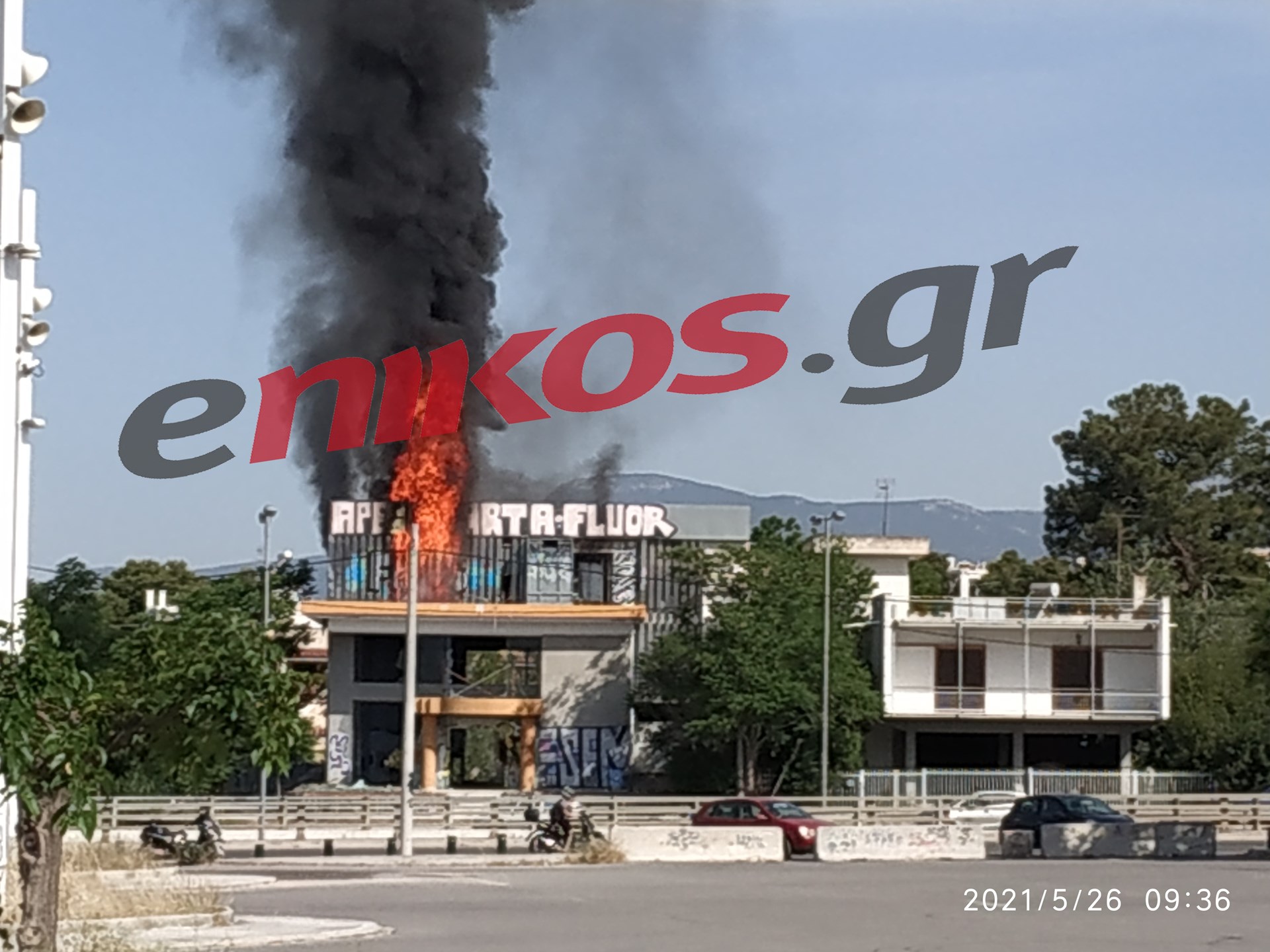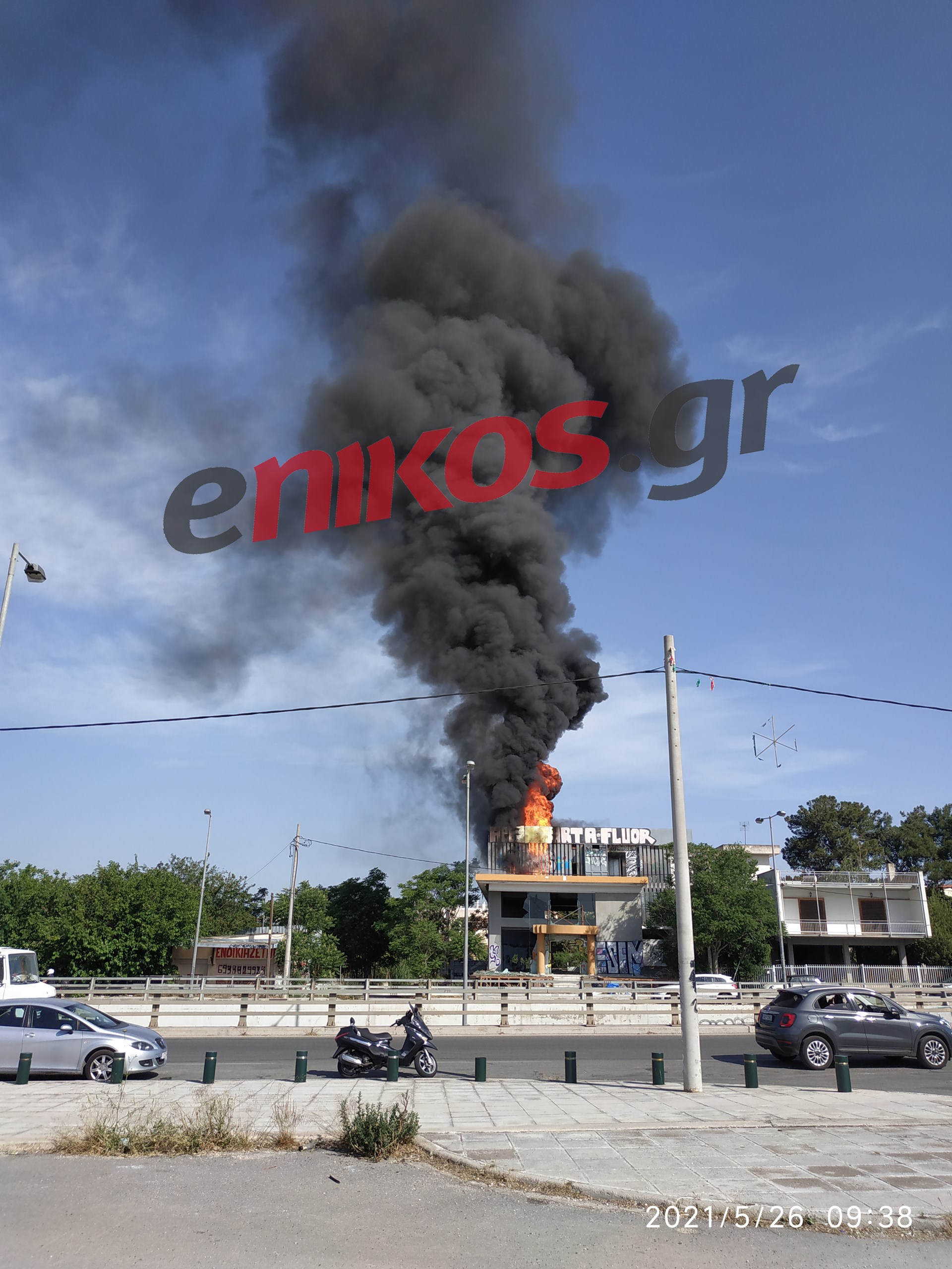 Όπως φαίνεται σε φωτογραφίες που έστειλε αναγνώστης του enikos.gr φλόγες και πυκνός καπνός βγαίνουν από τον δεύτερο όροφο του κτιρίου.