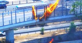 Ένας άνθρωπος προσπάθησε να την σβήσει με πυροσβεστήρα, ωστόσο η φωτιά έχει πάρει διαστάσεις και η ένταση της είναι μεγάλη με αποτέλεσμα να καίγεται μέχρι και το προστατευτικό στον δρόμο το οποίο πλέον έχει λιώσει, σύμφωνα με το ΣΚΑΪ.
