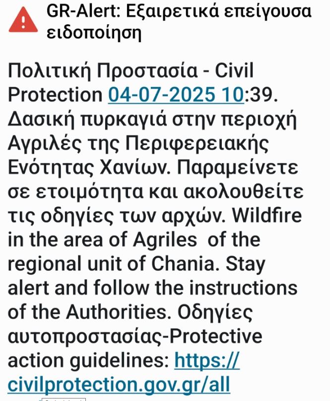 Στο σημείο πνέουν ισχυροί άνεμοι, ενώ εστάλη και μήνυμα από την Πολιτική Προστασία για τους κατοίκους να είναι σε ετοιμότητα.