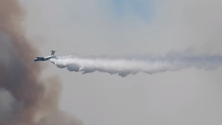 Τα αεροσκάφη τύπου Ilyushin Il-76, είναι από τα μεγαλύτερα στον κόσμο και αποκαλούνται “ιπτάμενα τάνκερ”. Σύμφωνα με τη Ρωσική πρεσβεία, το Il-76 μεταφέρει 42 τόνους νερό στις δυο δεξαμενές του. Γεμίζει με νερό μέσα σε 12-15 λεπτά, το οποίο ρίχνεται από ύψος έως 50 μέτρα σε 8 δευτερόλεπτα, καλύπτοντας μεγάλη επιφάνεια, 600×100 μέτρα. Χάρη στην υψηλή ταχύτητα που αναπτύσσει, φτάνει γρήγορα ακόμη και σε απομακρυσμένες περιοχές. Καθόλου τυχαία το αποκαλούν «υδάτινο βομβαρδιστικό».