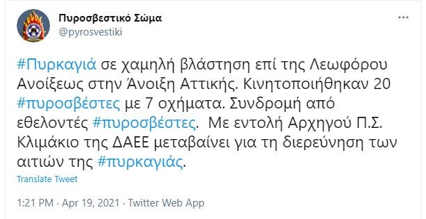 Φωτιά εκδηλώθηκε σε χαμηλή βλάστηση επί της Λεωφόρου Ανοίξεως στην Άνοιξη Αττικής.