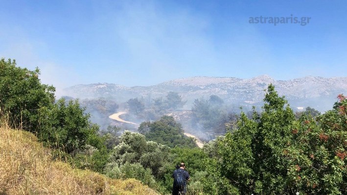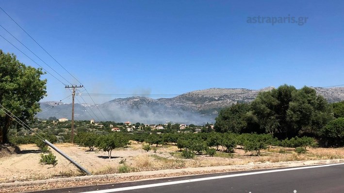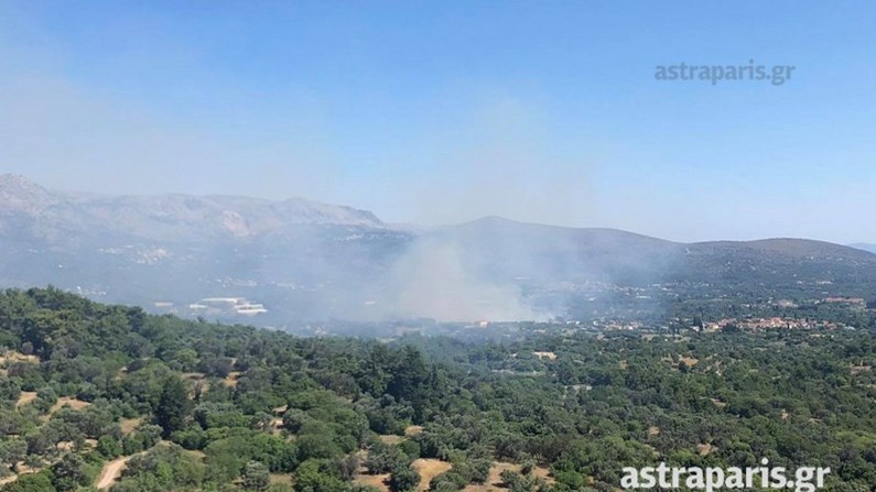 Στην περιοχή επιχειρούν 27 πυροσβέστες με εννέα οχήματα, μια ομάδα πεζοπόρο, δύο αεροσκάφη και τέσσερα ελικόπτερα.