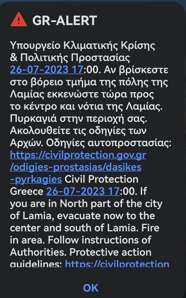 Τουλάχιστον τρία σπίτια έχουν παραδοθεί στις φλόγες στην περιοχή του Αφανού, στην Λαμία. Εστάλη μήνυμα από το 112 στους κατοίκους το οποίο αναφέρει «Αν βρίσκεστε στο βόρειο τμήμα τη πόλης της Λαμίας, εκκενώστε τώρα προς το κέντρο και νότια της Λαμίας».