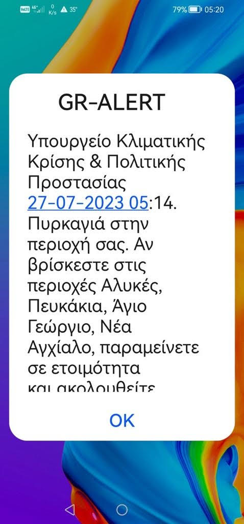 Συγκεκριμένα το μήνυμα αναφέρει: «Αν βρίσκεστε σε Αλυκές, Πευκάκια, Άγιο Γεώργιο, Αγχίαλο παραμείνετε σε ετοιμότητα».